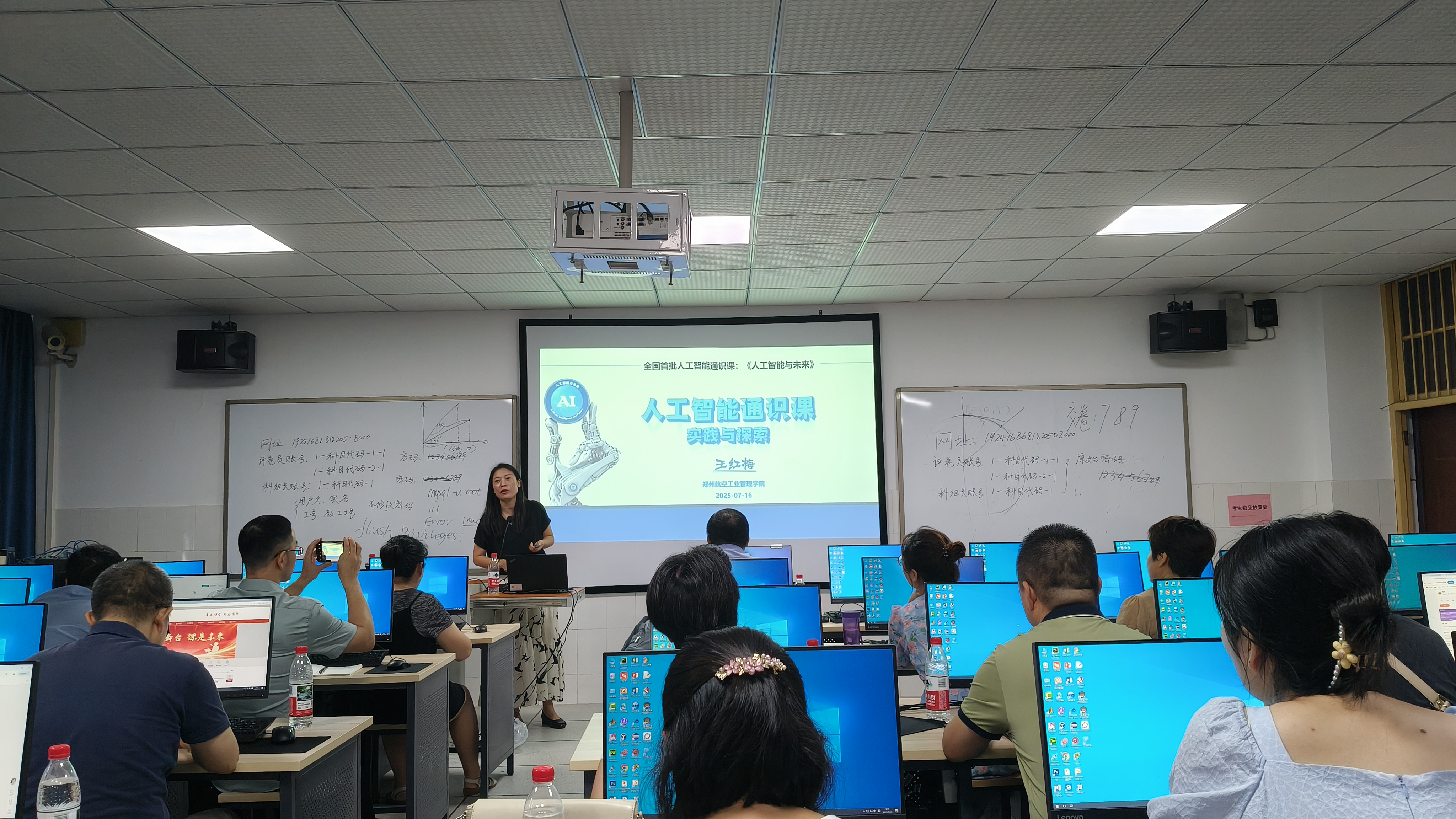 应衡阳师范学院教务处邀请,计算机通识教育中心主任王红梅教授7月16日赴衡阳,为该校2025年人工智能通识课师资培训作专题讲座与实践指导。上午,王教授以“通识AI课程建设与教学创新”为题,分享我校国家级一流课程建设经验;下午,在云海楼413机房带领80余名参训教师完成大模型实操及教学案例演练。衡阳师院教务处全程组织,教师互动热烈。此次交流进一步巩固两校在人工智能教育领域的合作,为我校优质课程资源辐射全国再添新篇。