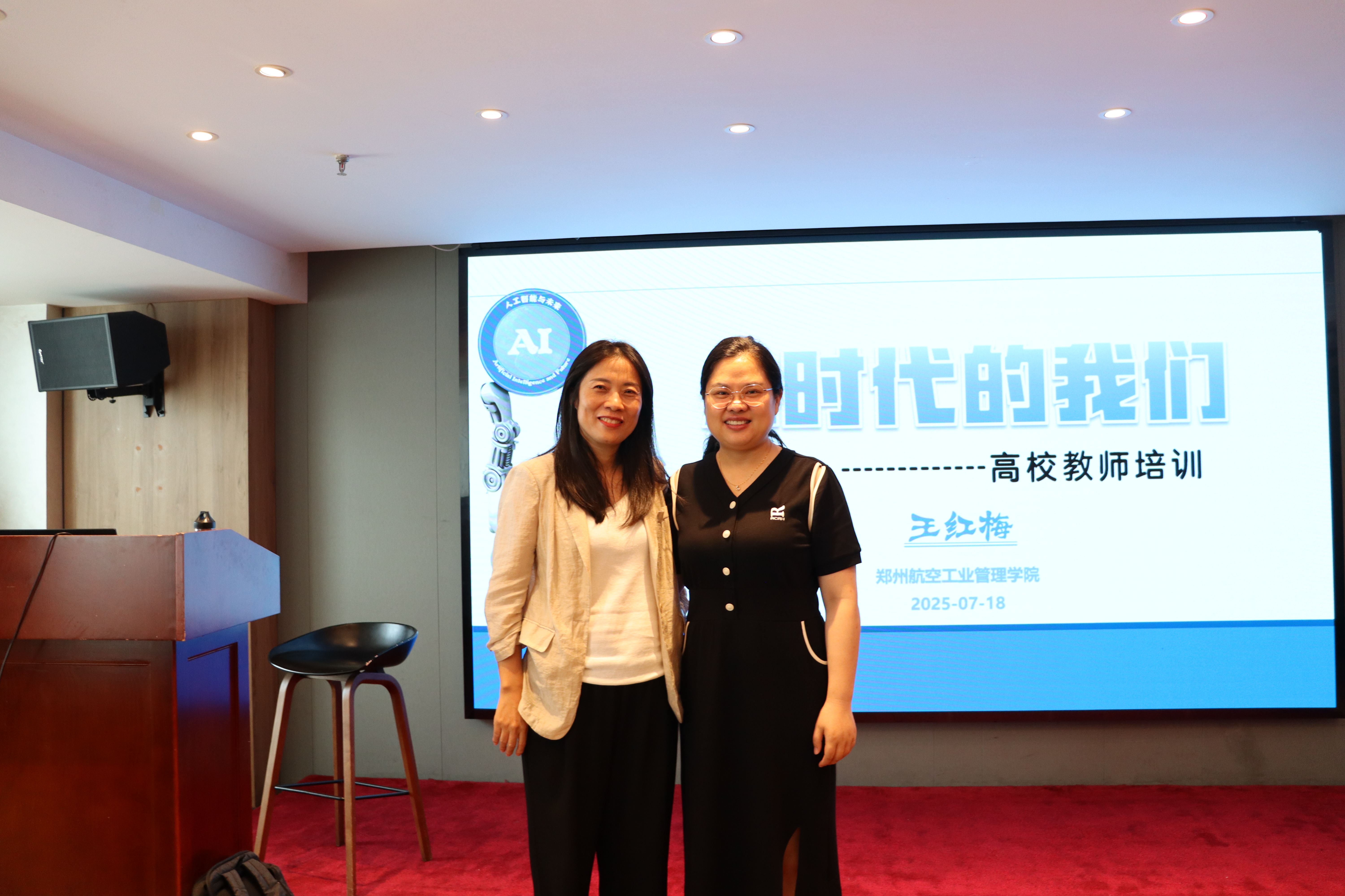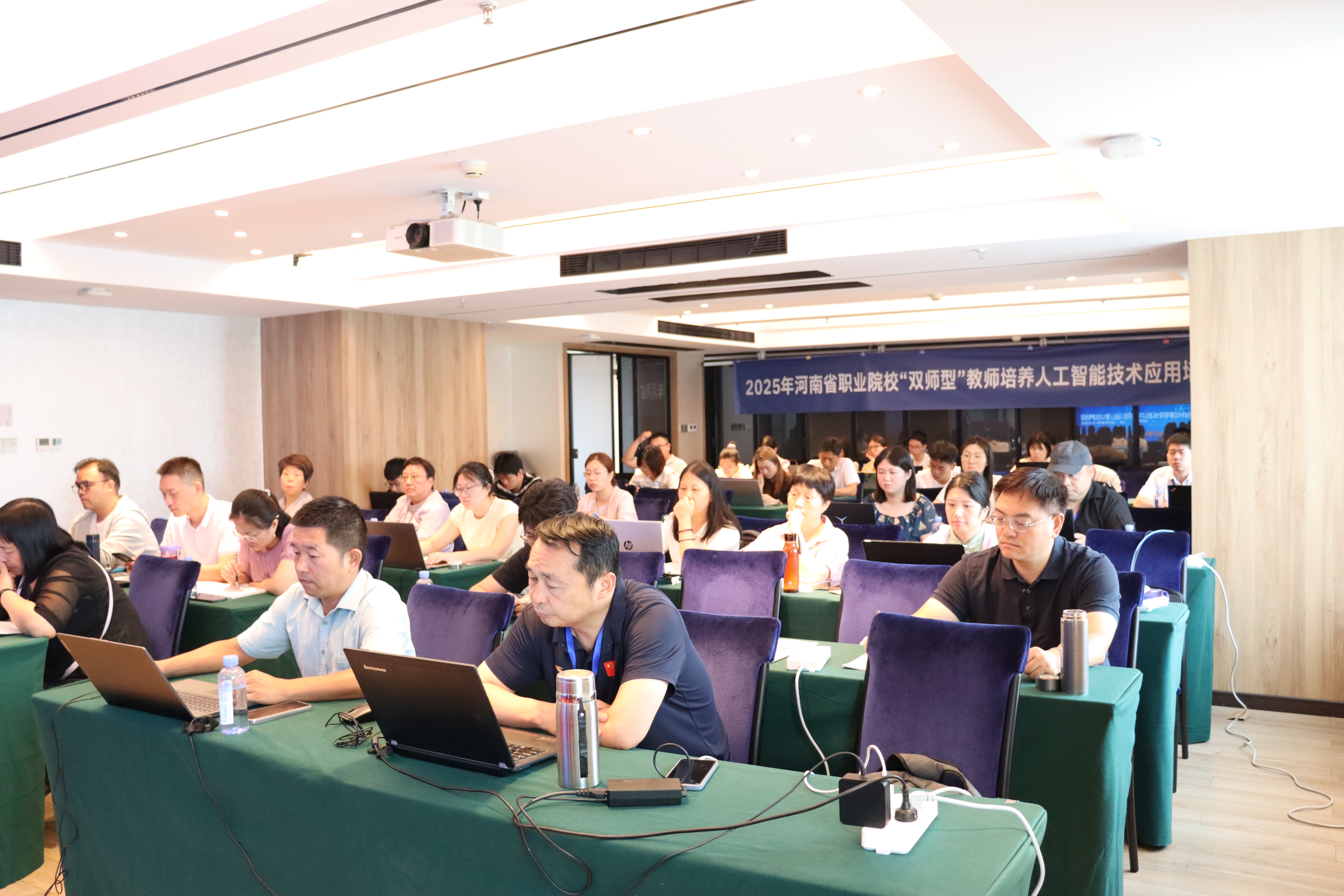 7月18日,王红梅教授应邀为“双师型”教师培训班授课,围绕人工智能教学创新作专题报告,并现场指导实训,助力参训教师提升校企双栖能力。