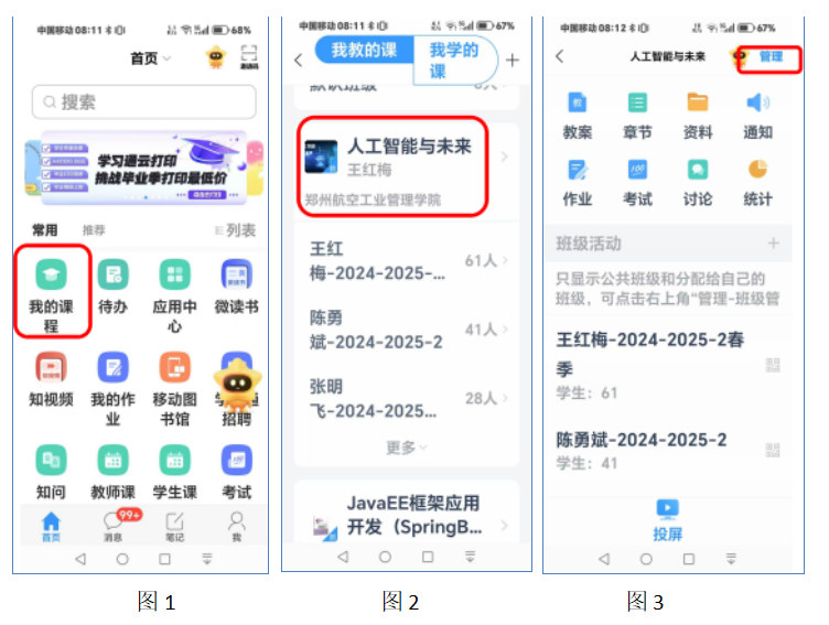 第 1 步:在手机上点开学习通 APP ,找到“我的课程 ”如图 1 所示。